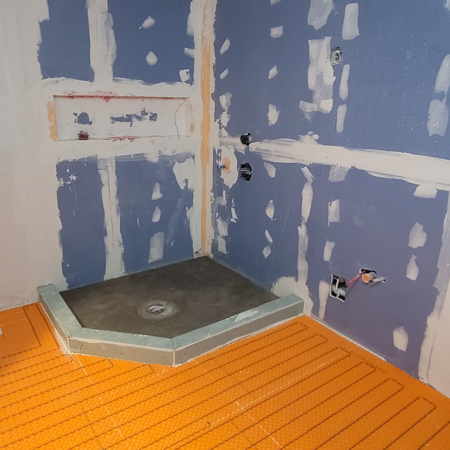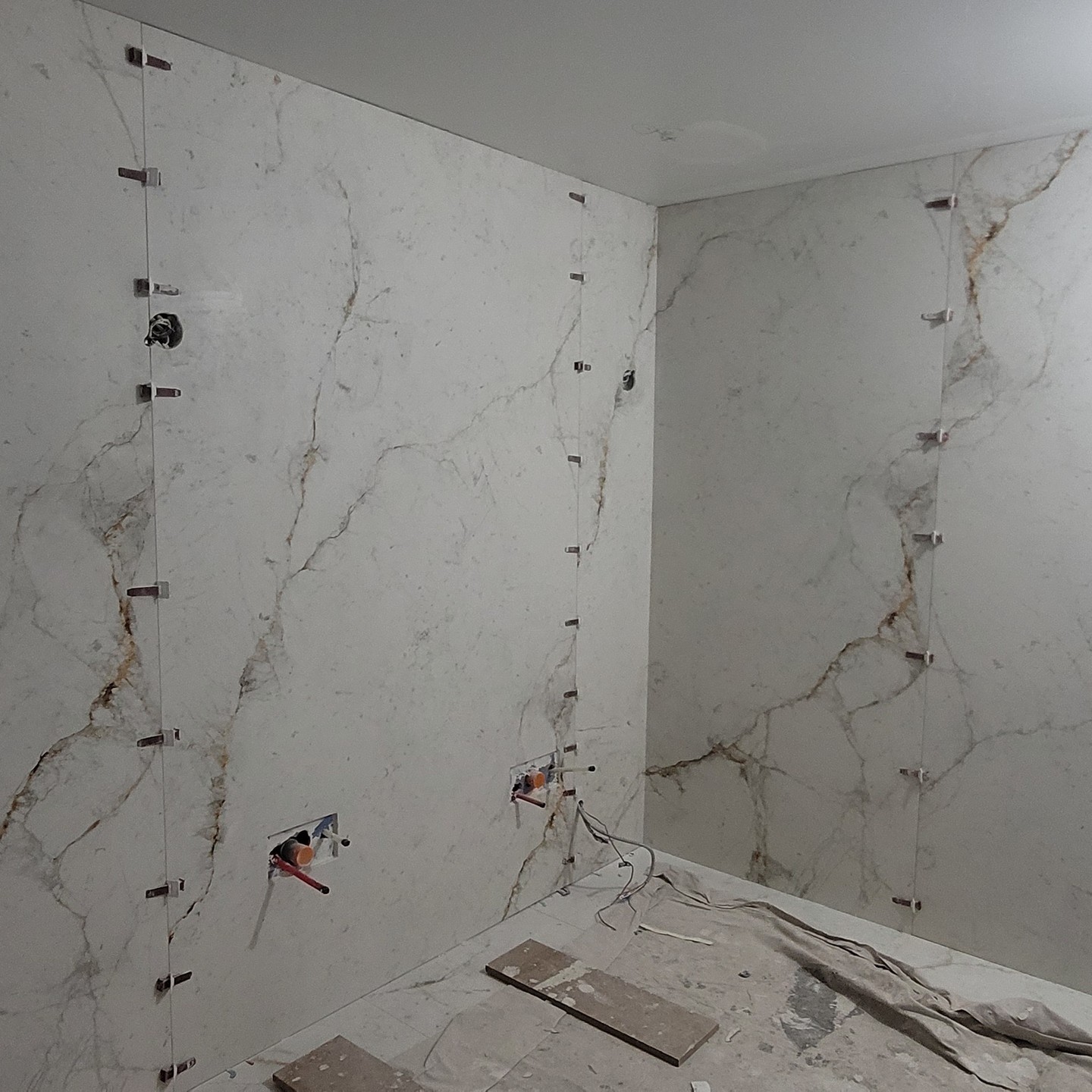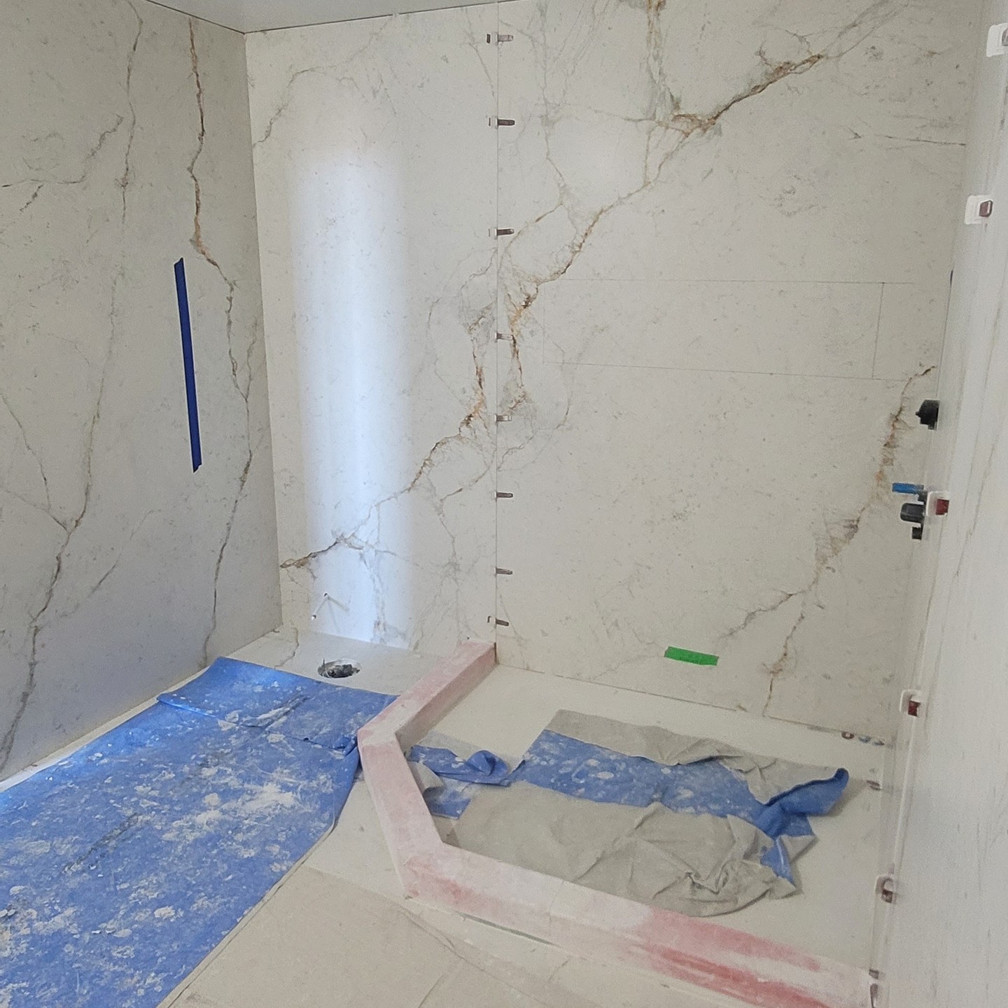 Materials | Porcelain Large-Format Tiles (4×8 ft), High-Performance Waterproof Membrane |